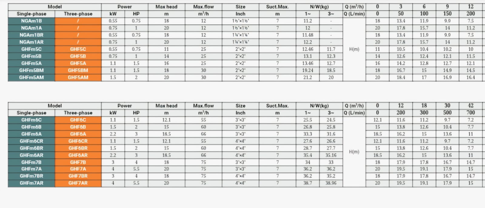 GHFm seriyalı nasoslar həm performans, həm də mexaniki ölçülər baxımından mülki, kənd təsərrüfatı və sənaye sahələrində istifadə üçün xüsusi olaraq hazırlanmışdır. Əldə edilən yüksək məhsuldarlıq və davamlı işləmə ehtimalı səbəbindən, göllərdən, çaylardan, quyulardan və s. su çəkməklə suvarma və çiləmə üçün istifadə etmək tövsiyə olunur. Nasoslar qapalı mühitdə quraşdırılmalı və ya ən azı pis hava şəraitindən qorunmalıdır.